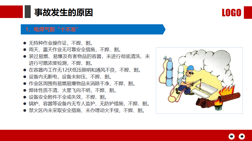 3.未彻底清洗装有易燃、易爆或有害物品的容器,未经可燃浓度检测,不进行焊割。