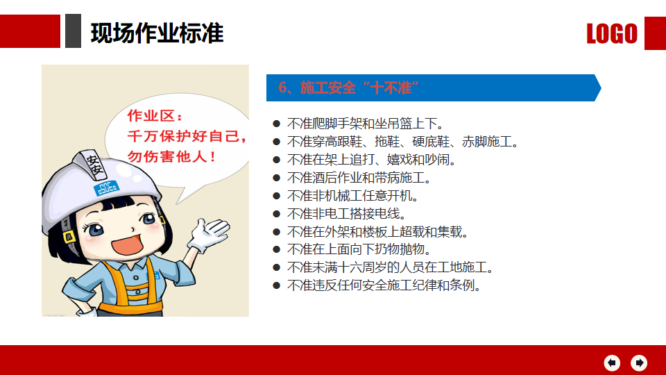 4.上班时,请勿穿着拖鞋、高跟鞋或硬底鞋。