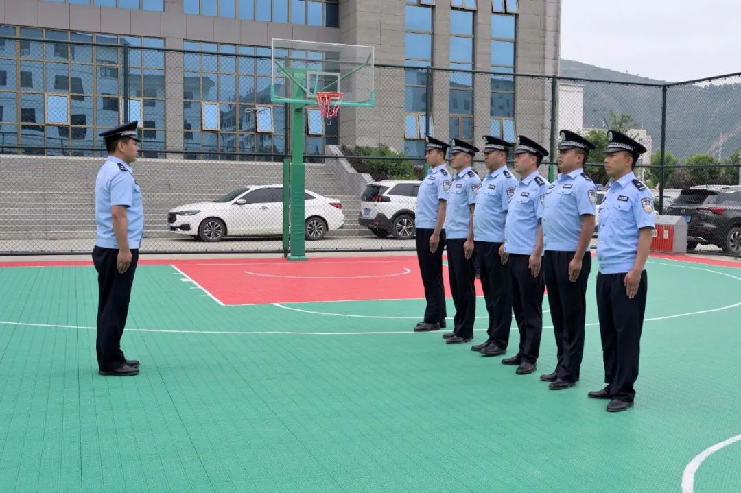 考核中,首先对县公安局党委班子成员和全局各部门小教官进行队列指挥考核,参考人员听从指令、口号响亮、动作整齐划一,对整理着装、报告词、稍息、立正、跨立、停止间转法、敬礼礼毕、脱帽戴帽、“三大步法” 等科目进行考核。