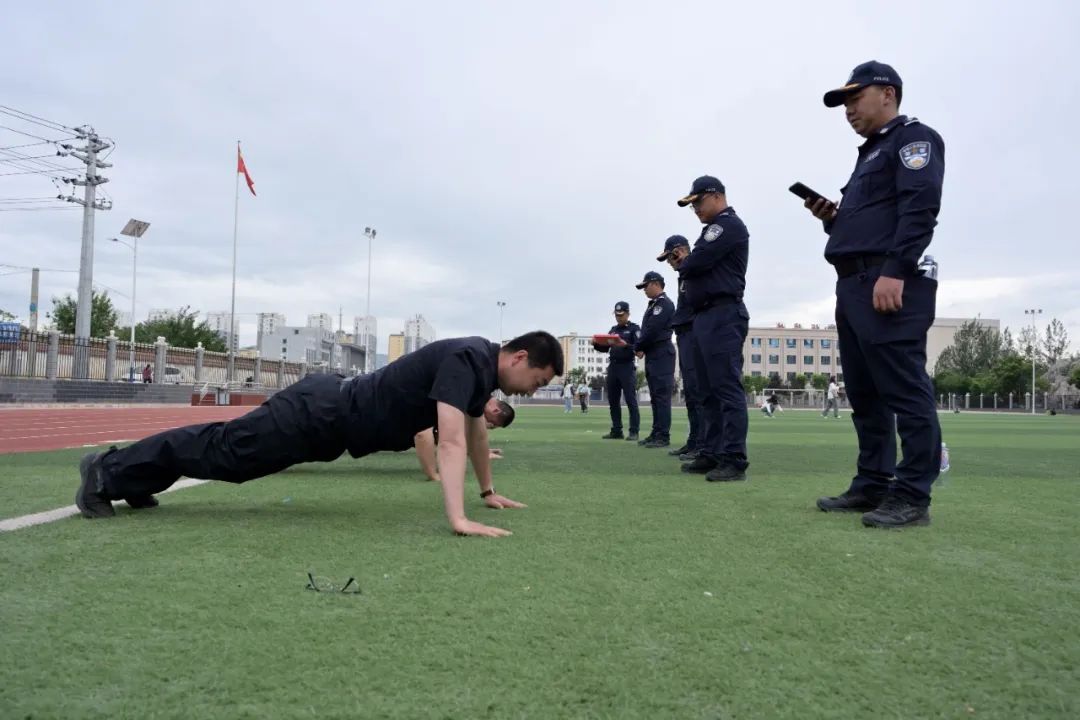 综合体能考核中,2024年至2025年符合警衔晋升条件的民警现场测试了立定跳远、1分钟俯卧撑(男)、1分钟仰卧起坐(女)、25米×4往返跑、1000米跑(男)、800米跑(女)等综合体能项目,全体参训人员警容严整、精神饱满,充分展示了过硬作风和昂扬向上的精神风貌。
