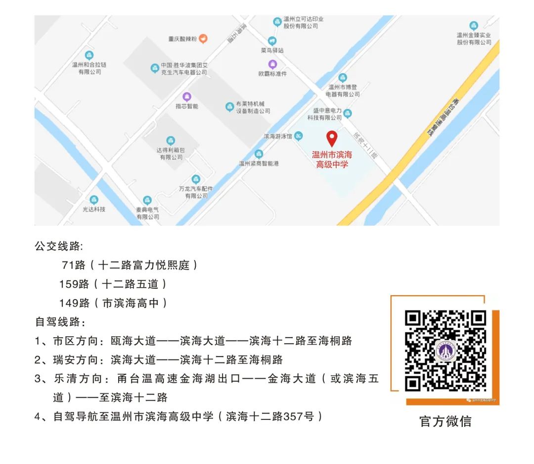 报名须知:请在温州市中招系统中填报志愿,并将滨海高中(龙湾片区代码415,鹿城片区代码179,瓯海片区代码313,洞头片区代码213)填写在第一志愿位置。在收到录取信息后,请务必在第一时间携带准考证和中考分数卡、户口簿原件及复印件来我校招生办公室办理报名、缴费、注册手续。请注意,报名截止后将不再接受报名。