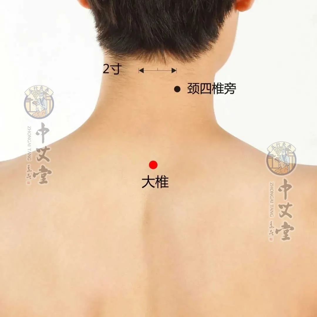 大椎穴:在脊柱区,第7颈椎棘突下凹陷中,后正中线上,为手足三阳经及督脉之会,为诸阳经交会穴, 能宣散一身之阳热。除了拔罐,还可以用灸法。