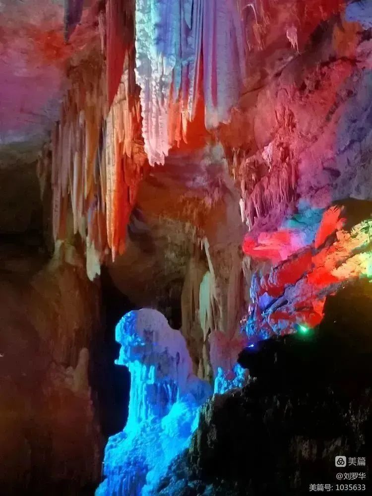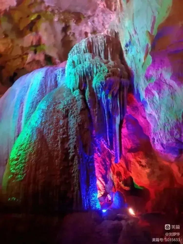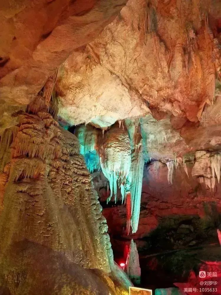 编辑:穿过人工隧道,踏上木质栈道,神农宫终于展现在我们面前。灯光、音乐、瀑布、溪流、石笋、石花、石柱......色彩斑斓,形态各异,令人目不暇接。此时此刻,世界仿佛浓缩于此,令人惊叹。也许是心灵的震撼,我们瞬间惊喜地发现自己进入了天堂;又瞬间惊叹于自己踩进了地狱。