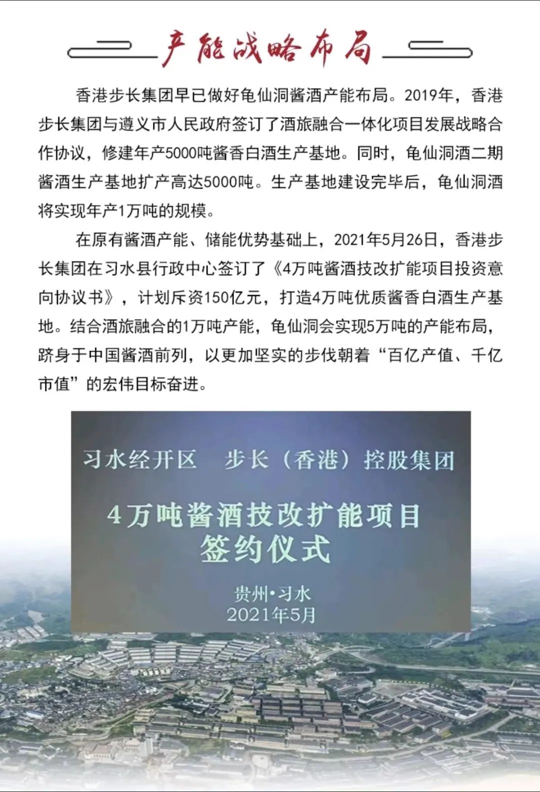 自2017年香港步长集团收购国帅·龟仙洞酒并成立贵州洞酿洞藏酒业有限公司以来,该企业不断致力于提升品质和扩大产能。目前,贵州洞酿洞藏酒业有限公司已成为拥有1.5万吨酱酒产能的优质酒企。