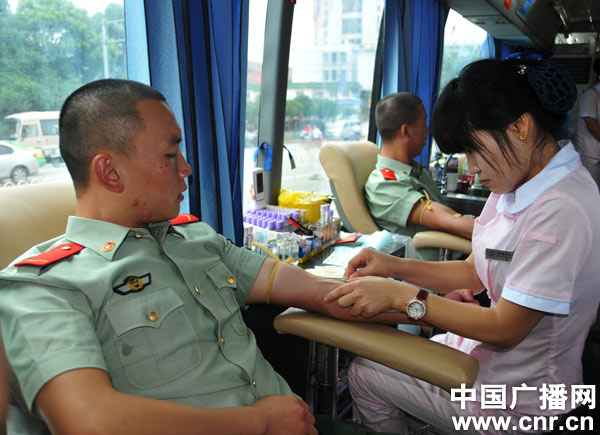 市红十字会常务副会长蓝芝苇和市中心血站领导一同慰问了献血者。