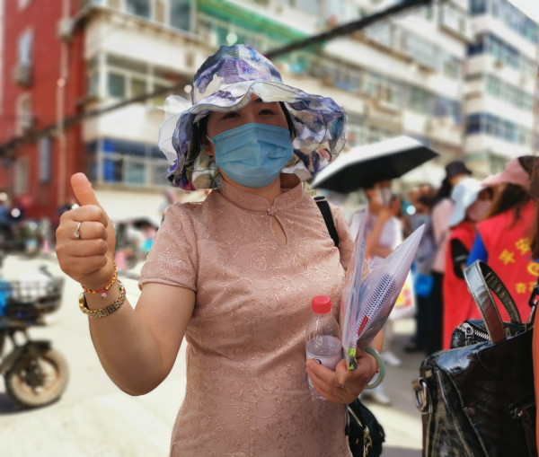 志愿者们搭建了爱心助考点,为过往的考生和在门口等候的家长提供水、遮阳伞、环保布袋等物品。考生们陆续走出考场,感受到来自“红马甲”的爱心鼓励。家长们焦急地探着头,垫着脚等待着,一瓶瓶矿泉水、一个个布袋虽然微不足道,却能缓解考生和家长的紧张情绪。在现场,志愿者还协助交警维持考场外的秩序,向等待中的家长适时地做了“全域无垃圾和禁塑减废”行动的宣传,得到了家长们的一致认可。
