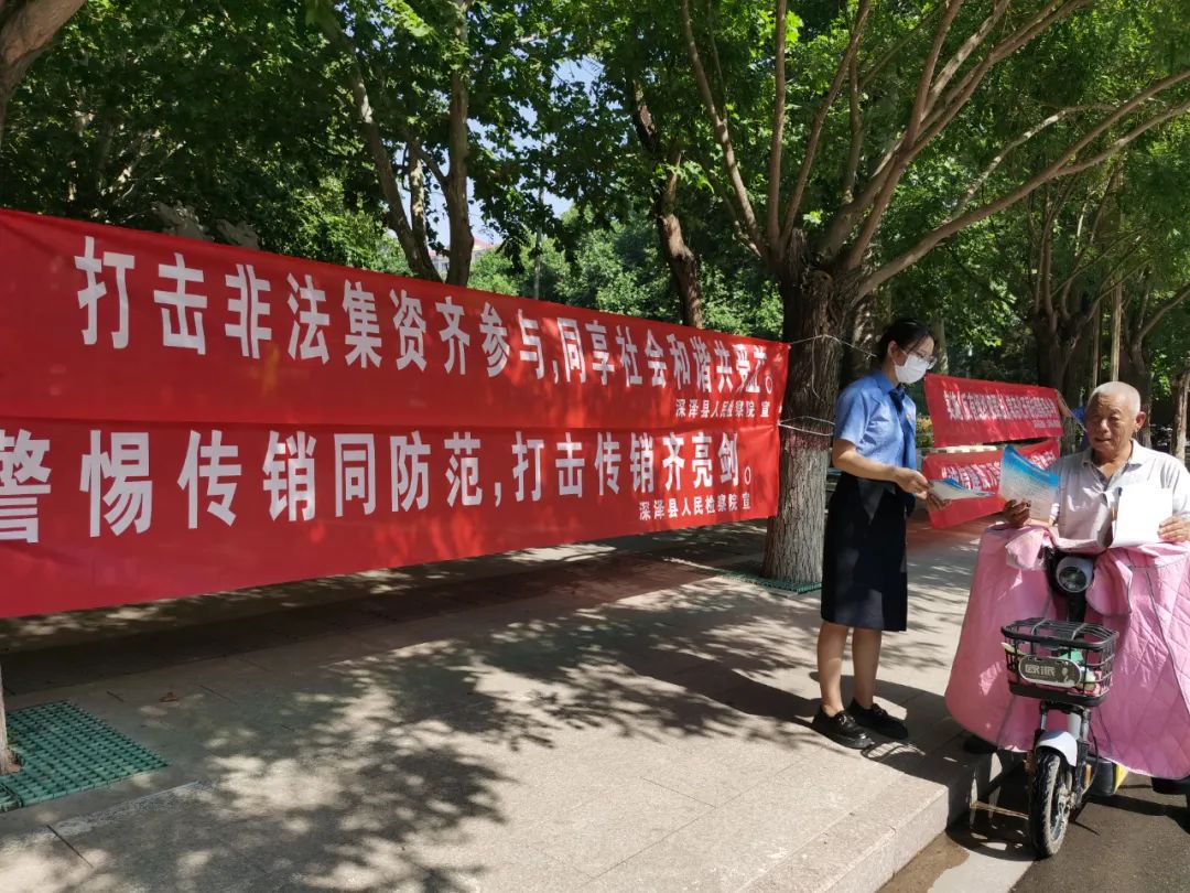 为进一步加大打击非法集资、打击传销及常态化开展扫黑除恶斗争的宣传力度,6月15日,深泽县人民检察院在丽泽广场开展了以“打击非法集资齐参与,同享社会和谐共受益”“警惕传销同防范,打击传销齐亮剑”“实施《反有组织犯罪法》,常态化开展扫黑除恶斗争”为主题的联合宣传活动。