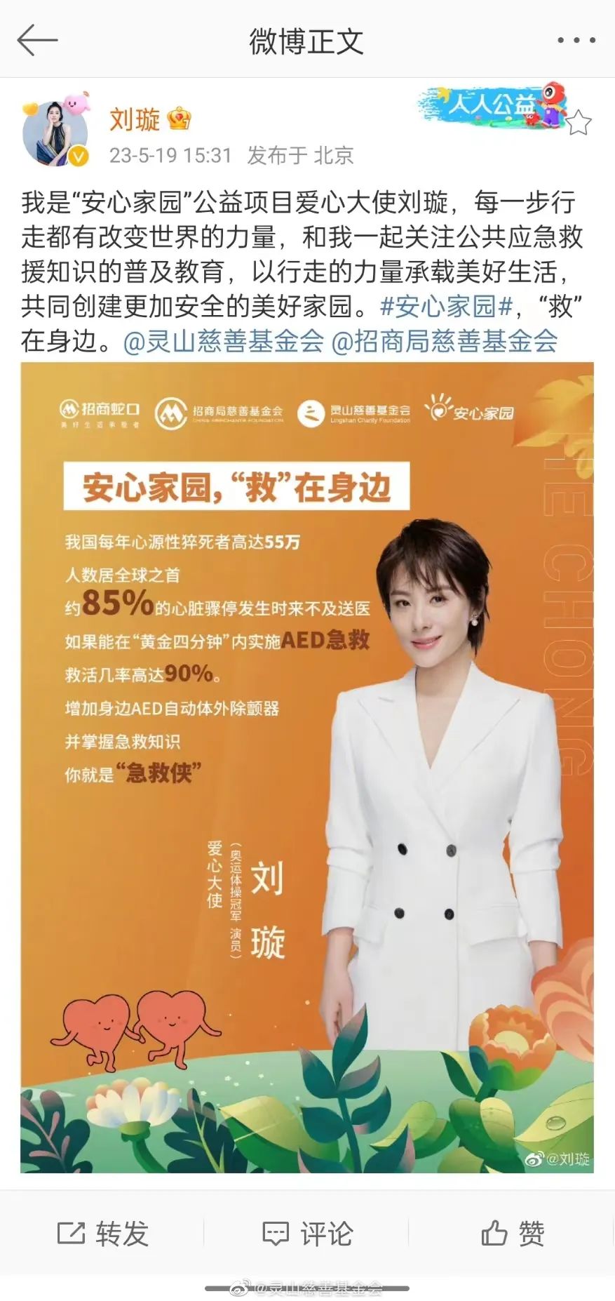 作为今年“爱行走”公益活动的爱心大使。
