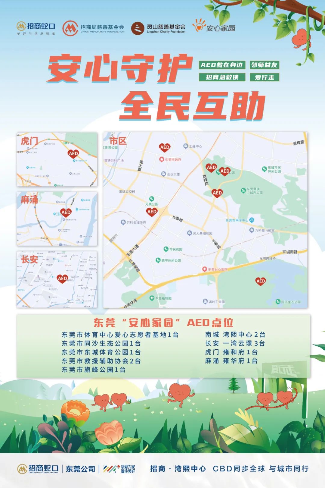 随后,招商蛇口、招商局慈善基金会、灵山慈善基金会等单位的负责人与政府代表共同揭开了AED“安心地图”。