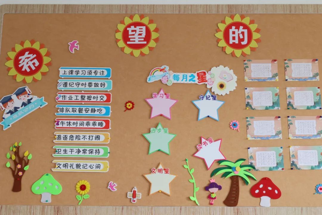 学校积极推进“三全德育五育融合”“三段成长目标”“六百德育课程”“全员德育导师制”等一系列新理念、新思想、新战略。在此基础上,我们注重班级与廊道文化建设,紧紧围绕“发现潜能绽放天赋”,将室内文化设定为探究式主题文化,让教室成为乐趣园。我们设置了奥妙探究区和主题文化展示区,每个区域都通过读绘本、上网查阅资料、收集图片、绘画手工等多种形式,展示学生探究的成果。这样,学生在探究中学习知识,体验成功的喜悦。