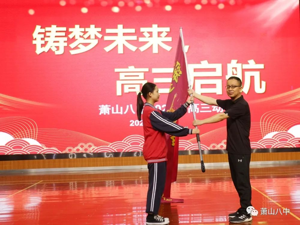 年级部分管领导、校党委委员朱国飞,以及年级部副主任陆锡锋老师,为各班授予了旗帜。
