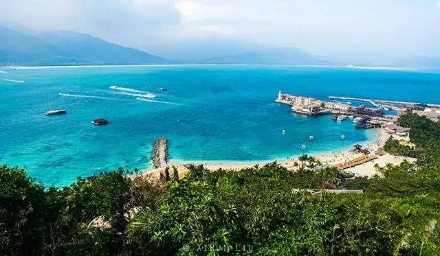 水清澈见底,沙滩洁白如玉,礁石错落有致。