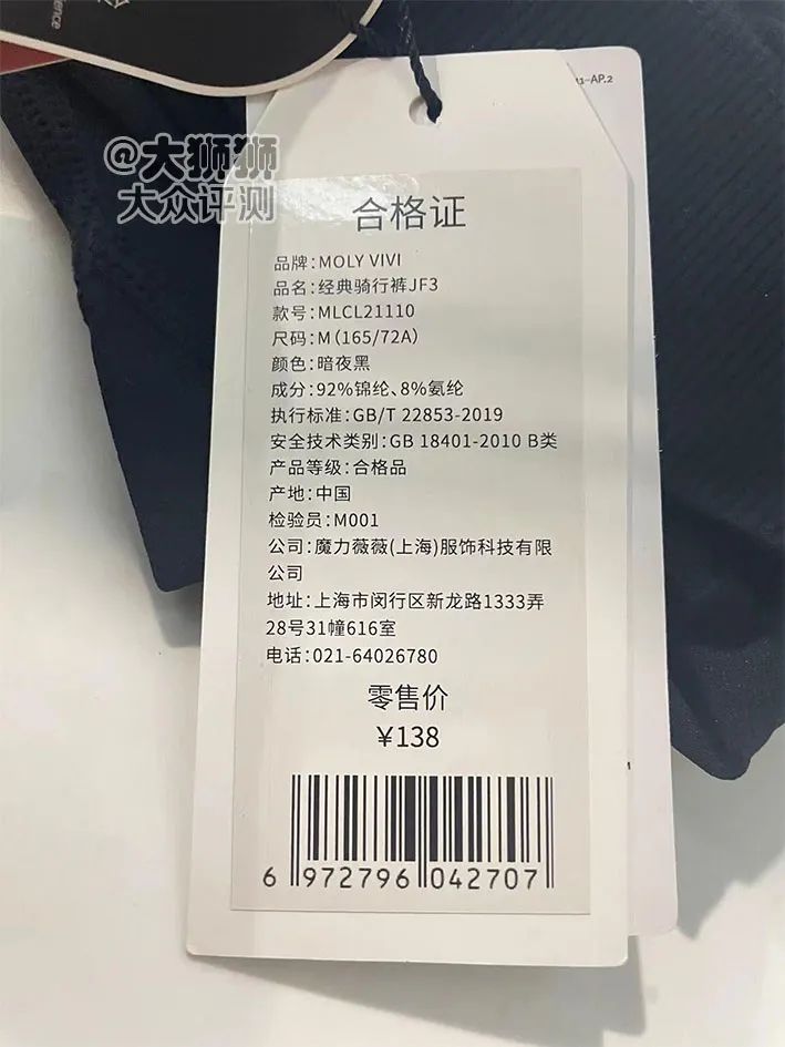 试用产品:MolyVivi魔力薇薇自行车裤。