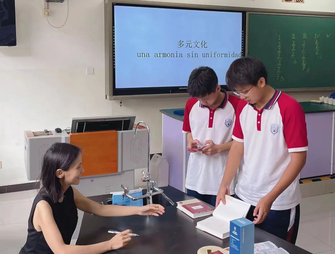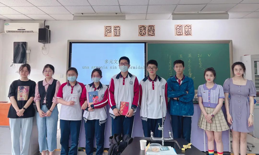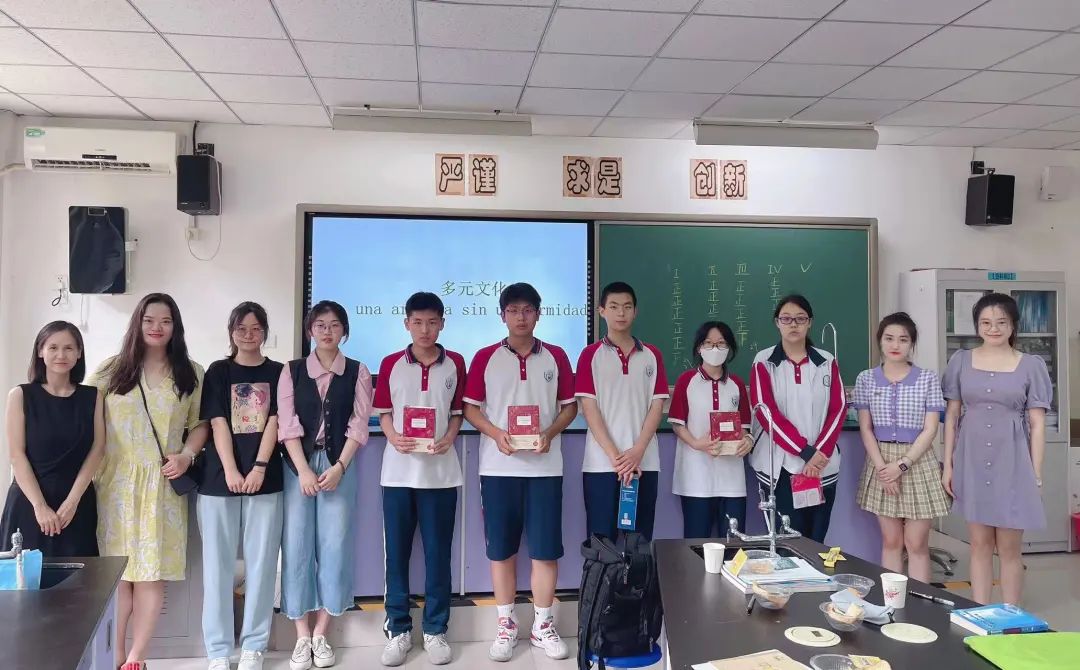 首都师范大学外国语学院法德西教工党支部书记廖菡副教授和西班牙语系主任杨玲副教授为每组同学颁发了西语特色纪念品,并与各组同学合影留念。杨玲老师还亲自将自己翻译出版的西语书籍赠送给同学们,以资鼓励。