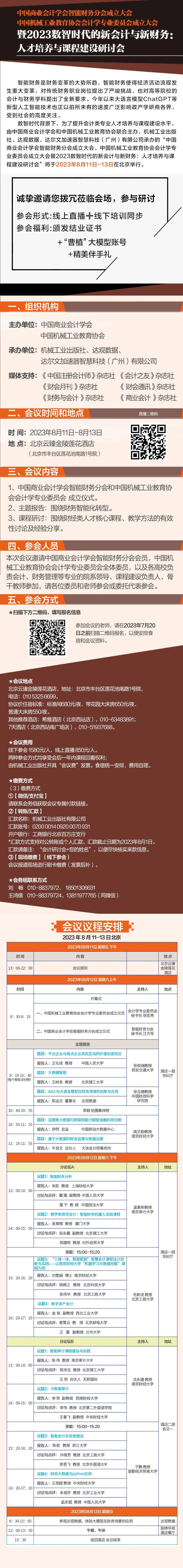 2023数智时代的新会计与新财务:人才培养与课程建设研讨会”将于2023年8月11日-13日在北京举行