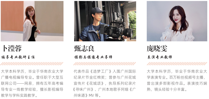 在艺术板块,我们聘请了行业内的教育名家担任学科带头人,他们都来自中国传媒大学、中央美术学院、天津美术学院、暨南大学、华南理工大学、华南农业大学和华中科技大学等著名高校。我们的骨干教师拥有超过10年的高考艺术教学经验,他们在教学方面表现出色。