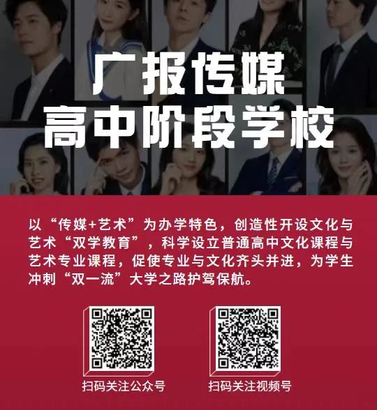 高新·广报传媒书院是由广州日报传媒股份有限公司和广州高新教育集团联合打造的高中阶段教育项目。该项目致力于构建以学生成长为核心的管理机制、特色课程、教育教学模式、师资队伍和评价机制,以适应未来变革与新招考背景的教学创新实践。该项目对标全国800多所综合性大学和44所艺术类大学的特长生招生要求,开设播音与主持、表演、戏剧影视导演、舞蹈、美术、音乐、体育等全科艺术专业课程,供学生个性化选择。