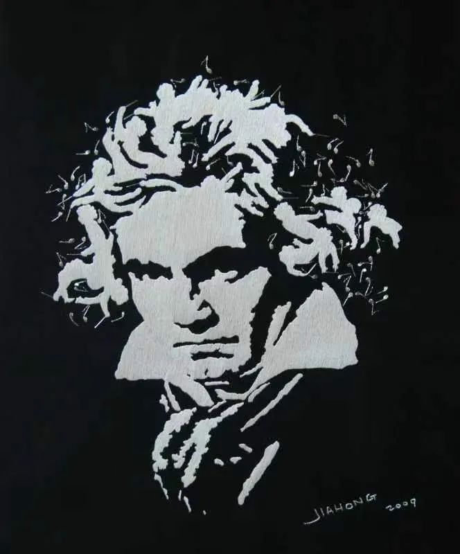 从上到下,依次为国大师金家虹的作品《杭绣<跳动的音符>》、新峰人才厉鹏强的作品《竹根雕<大唐盛世>》以及新峰人才杭鑫的作品《紫砂<御·灵>》。