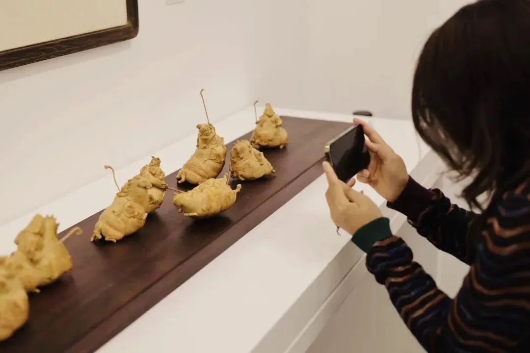 在本次开幕式上,来自浙江的青年艺术家厉鹏强(竹根雕)、何琦(刺绣)、杭鑫(紫砂)和徐凤鸣(紫檀嵌银)都来到了现场。作为新峰计划人才,他们带来了自己的作品,其中既有对老一辈民间工艺大师的传承,也融入了他们自身的创新与思考。这些作品吸引了众多参观者驻足观看。