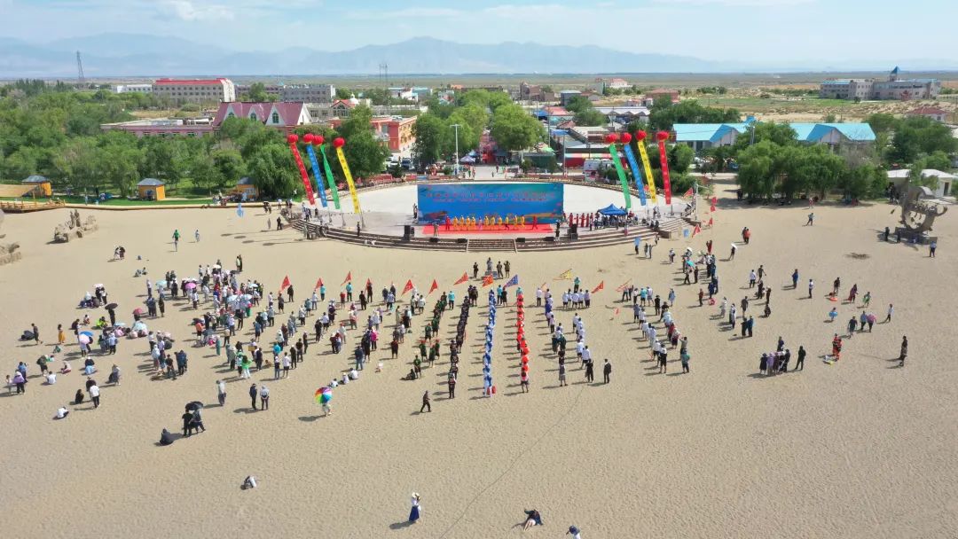 在六月的和硕,风轻云淡,绿树成荫,瓜果挂枝。22日端午小长假首日,天气晴朗,游客出游热情高涨,文旅消费火爆开局。在金沙滩景区,自治区第十四届运动会群众展演“西海竞渡多彩和硕”龙舟赛成功举办,吸引了众多游客。他们或观赏赛龙舟、水上拔河、包粽子、文艺演出等节目,或在岸边嬉戏、沙滩漫步,或品尝色香味俱全的特色小吃。以湖水、沙滩、日光浴、传统赛事为主的旅游元素吸引了来自五湖四海的游客竞相到景区感受“大海”的气息、沙滩的浪漫以及各类活动的精彩。清澈的湖水、绵延的金黄色细沙以及优美的自然风光和人文景观,让游人忘却了炎炎夏日带来的烦恼,尽享金沙滩所带来的无尽欢乐和别样风情。