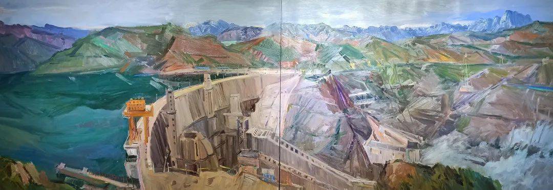 《李家峡水库》是一幅140X400厘米的画作,作者是范迪安。