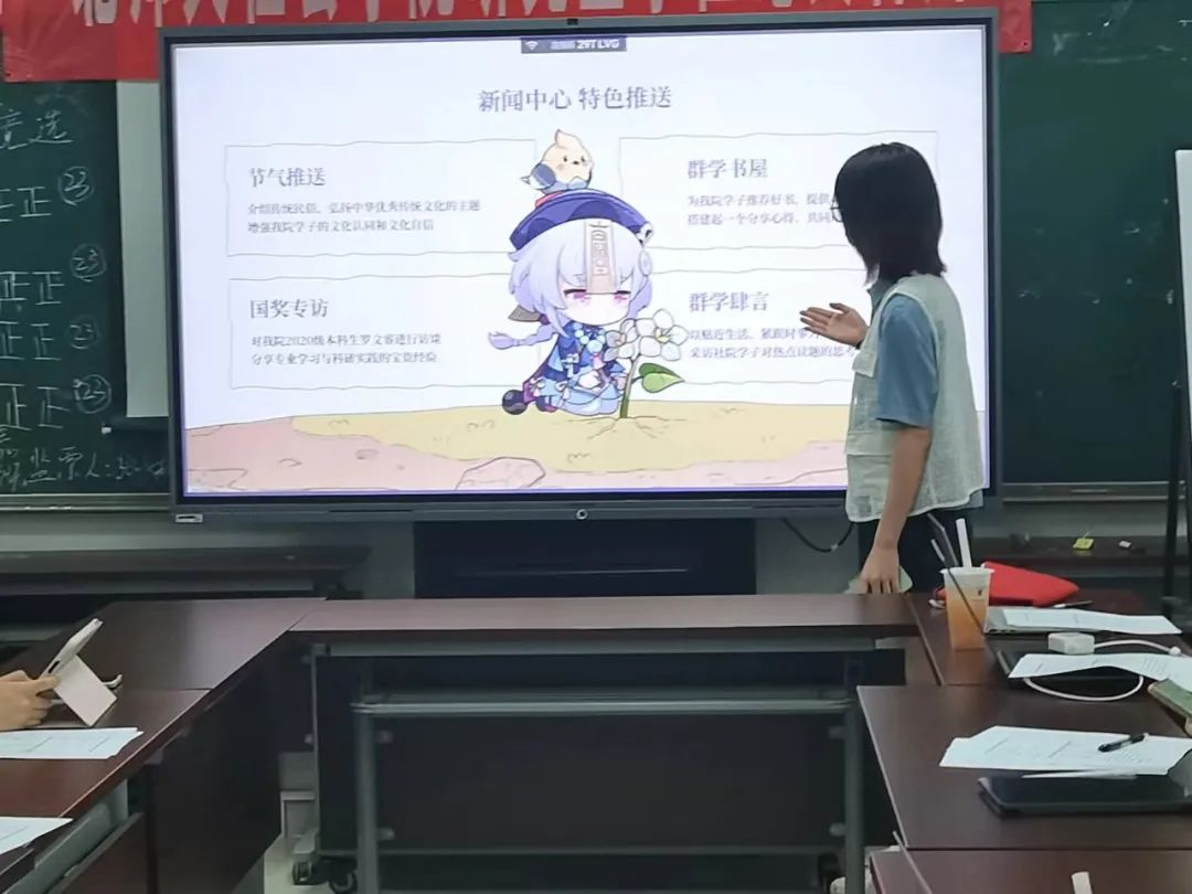 新闻中心部长洪寒祺同学总结了过去一年的工作。在过去的一年里,新闻中心一直遵循部门的工作定位,积极推进部门的发展规划,并与学院和学校保持密切联系。除了日常基础排版推送外,新闻中心还与其他部门合作,创新活动形式和宣传方式。新闻中心的特色推送也在稳步推出,包括“群学书屋”为我校学子推荐好书并分享心得;“群学肆言”围绕生活、时事主题,如大学生活适应、发疯文学和出游计划等,推出多期推送;“国奖专访”通过对我院2020级本科生罗文睿的访谈,为学生提供生动的参照,帮助他们见贤思齐、自我提升和追求卓越。与其他部门合作举办的活动中,新闻中心与实践部联办的“师大学子同游辅仁”别出心裁,鼓励参与者用镜头记录下自己眼中的辅仁校区。与文体部合作举办的“印象·春光”活动中,新闻中心创新性地开辟了VLOG和PLOG两种投稿形式,鼓励社会学院的广大师生用镜头记录北师春色。此外,新闻中心还在迎新季和毕业季等活动中进行了礼品定制和文创设计。最后,洪寒祺同学对新闻中心部门中部长和部员表示感谢,并希望新闻中心的工作能够顺利进行,薪火相传。