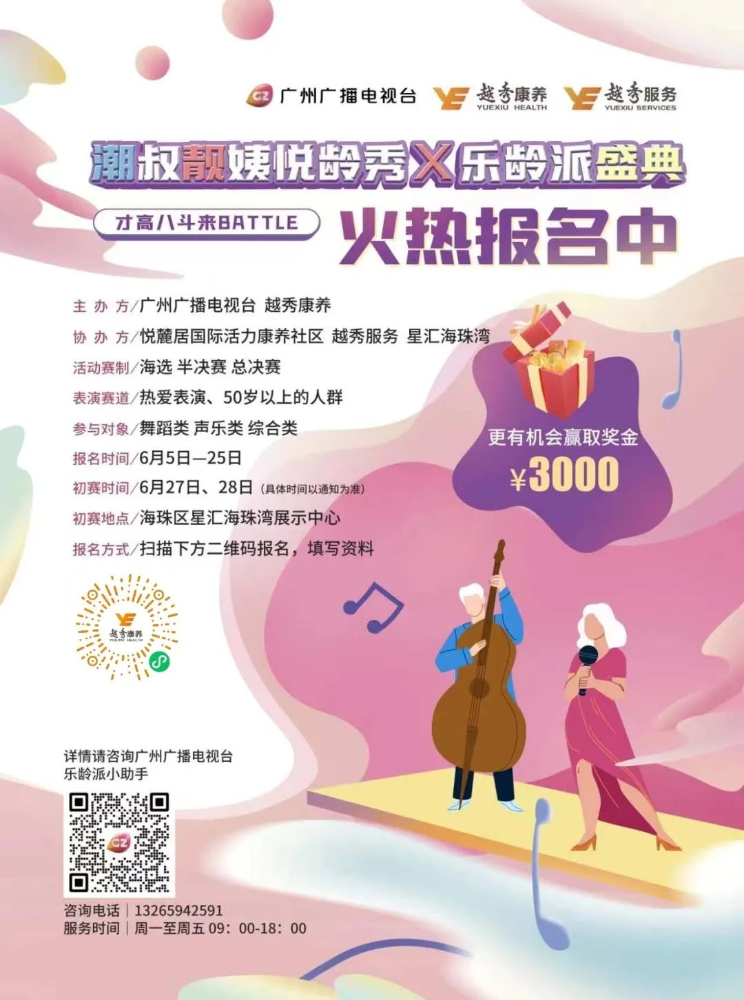 6月27日和28日,我会康养与生活服务委的主任单位越秀康养将与广州广播电视台等单位联合举办中老年人才艺秀第二届“潮叔靓姨悦龄秀×乐龄派盛典”。我们诚挚邀请各物业服务企业组织业主踊跃参加。