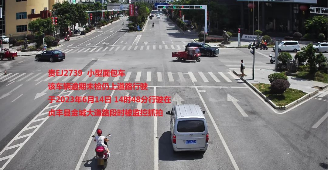 在2023年6月14日14时48分,该车辆在贞丰县金城大道路段行驶时被监控抓拍。
