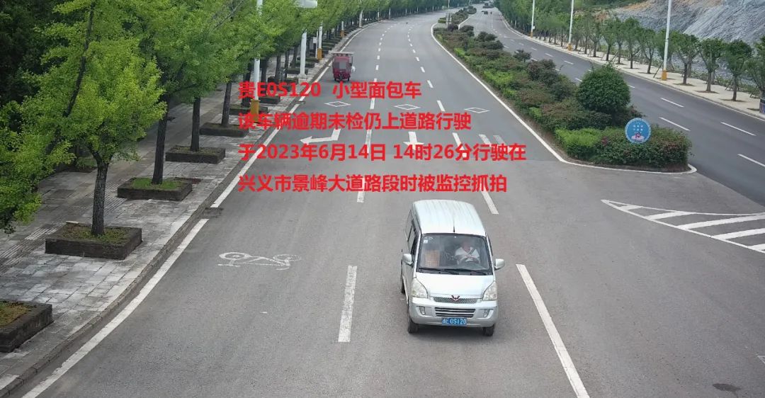 在2023年6月14日14时26分,该车辆行驶在兴义市景峰大道路段,被监控抓拍。