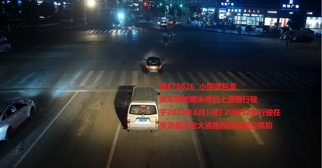 在2023年6月14日20时32分,该车辆行驶在安龙县安龙大道路段,被监控抓拍。