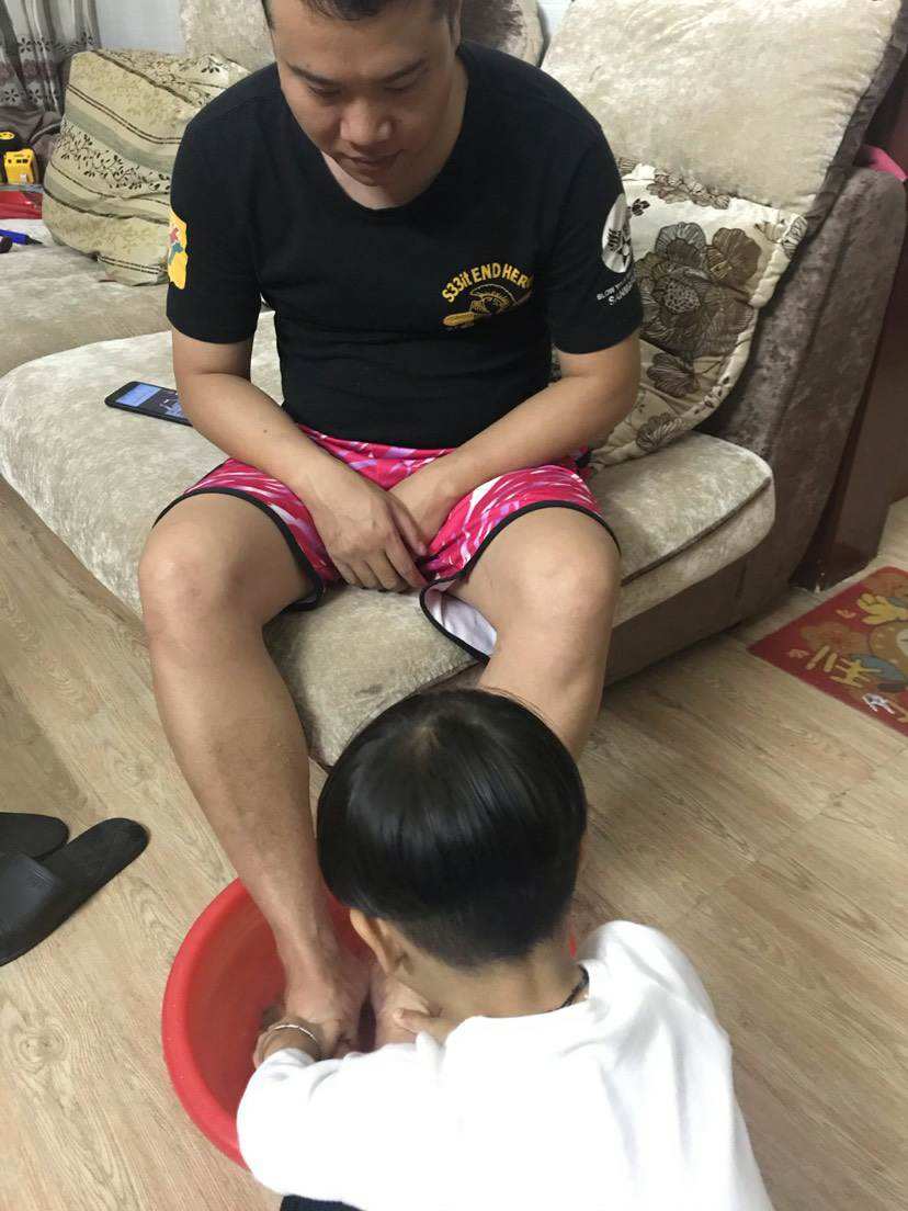 今天,我要给爸爸洗脚、捶背,爸爸辛苦啦!