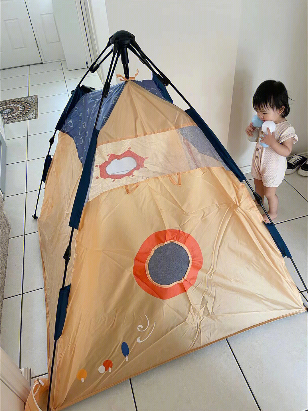 3.分享帐篷的大小,让幼儿了解空间与高度之间的关系。