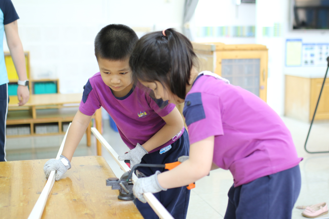 孩子们拿好准备好的材料和工具就开始自由组合进行搭建