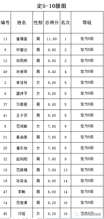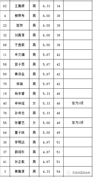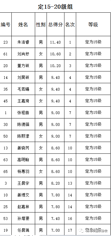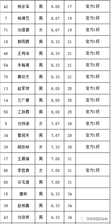 2023年青岛市即墨区夏季定段、定(升)级比赛成绩公示