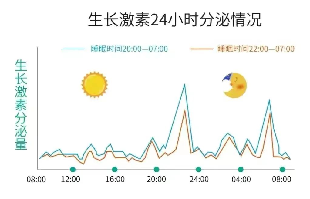长高需要生长激素的帮助。生长激素的分泌高峰通常在晚上22:00至2:00之间,而且睡眠越深,分泌越旺盛。