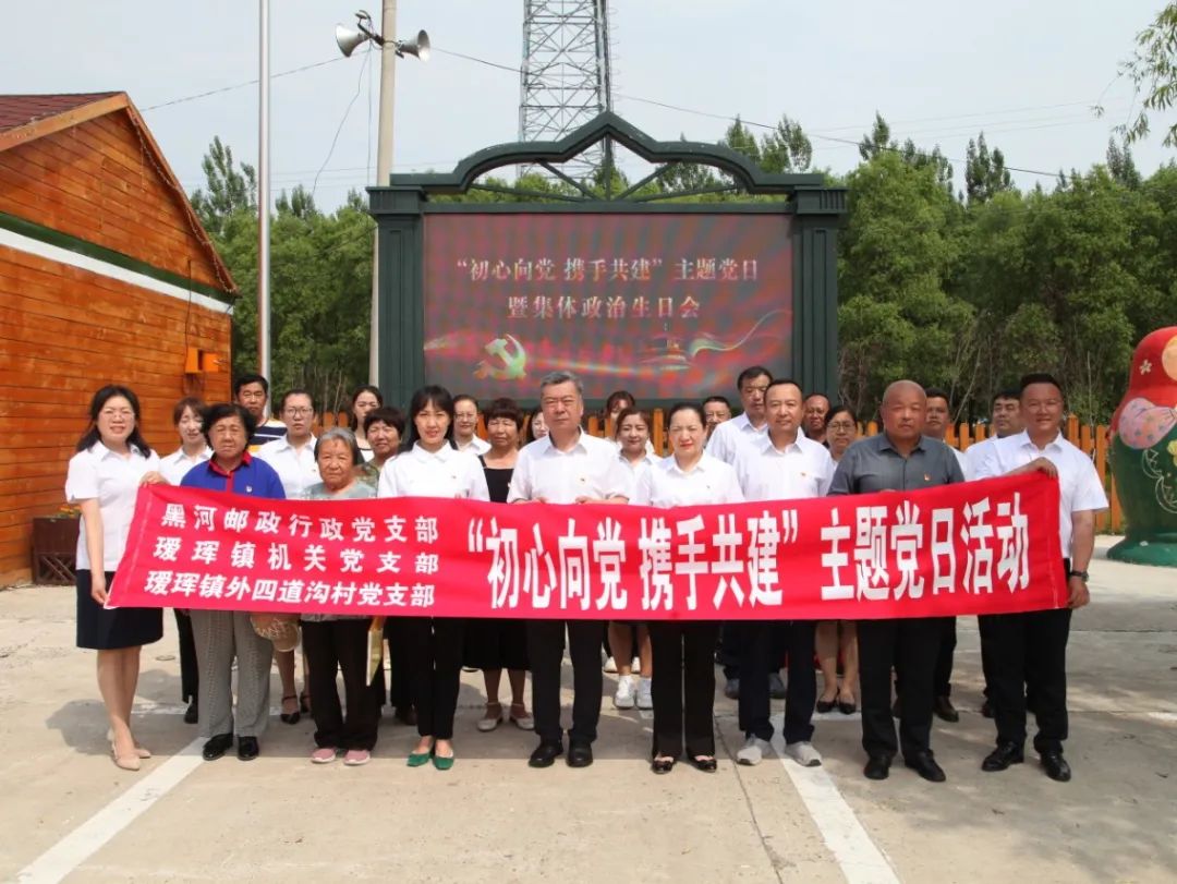 为庆祝中国共产党成立102周年,强化党组织的政治功能和组织功能建设,发挥党支部联合开展党日活动的优势互补作用,持续推进“党建引领,村企共建”活动,深化村企互助、资源共享,黑河邮政分公司行政党支部与瑷珲镇机关党支部党员代表、瑷珲镇外四道沟村党支部、外四道沟村驻村工作队联合开展“初心向党携手共建”主题党日暨集体政治生日会活动,以纪念这个重要的日子。