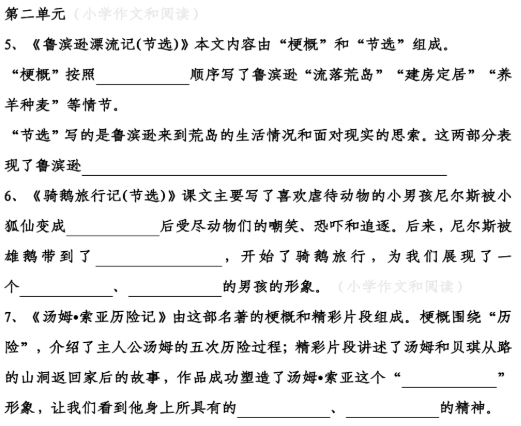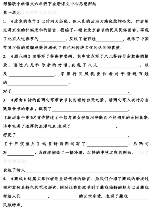 六年级下册语文教材中的第1-5单元。