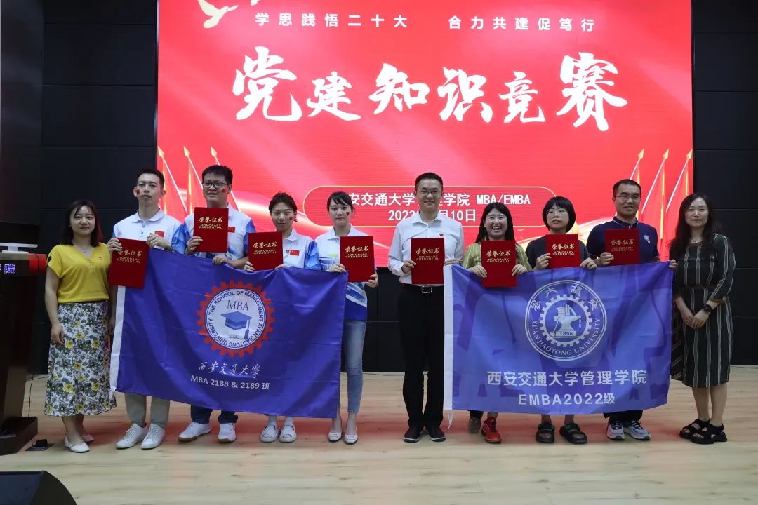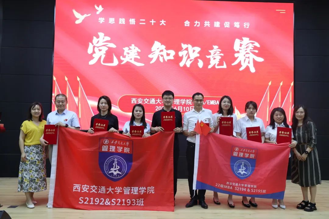 为深入学习贯彻习近平新时代中国特色社会主义思想,从党的百年伟大奋斗历程中汲取继续前进的智慧,厚植爱国情怀、坚定理想信念,6月10日,MBA/EMBA中心和MBA/EMBA2022级各临时党支部联合举办了“学思践悟二十大、合力共建促笃行”西安交通大学管理学院MBA/EMBA党建知识竞赛。