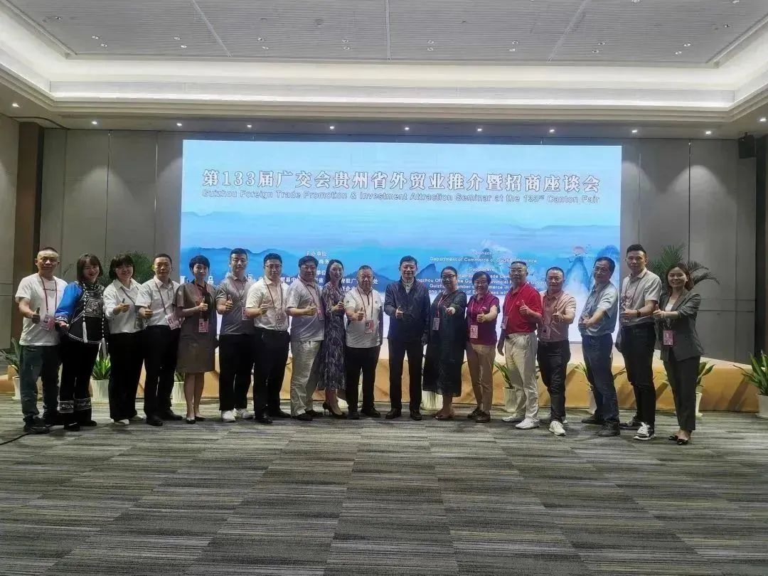 5月4日,贵州省商务厅举办了一场名为“第133届广交会贵州省外贸业推介暨招商座谈会”的活动。活动在广州市广交会展馆举行,由广东省贵州商会(联盟)作为本次座谈会的支持单位。慕东泰主席带领来自广州市贵州商会、深圳市贵州商会、东莞市贵州商会、中山市贵州商会、珠海市贵州商会、肇庆市贵州商会、广东省贵州毕节商会、深圳市贵州遵义商会、深圳市贵州毕节商会和广州市贵州遵义商会的40余名在粤贵州籍企业家参加了座谈会。