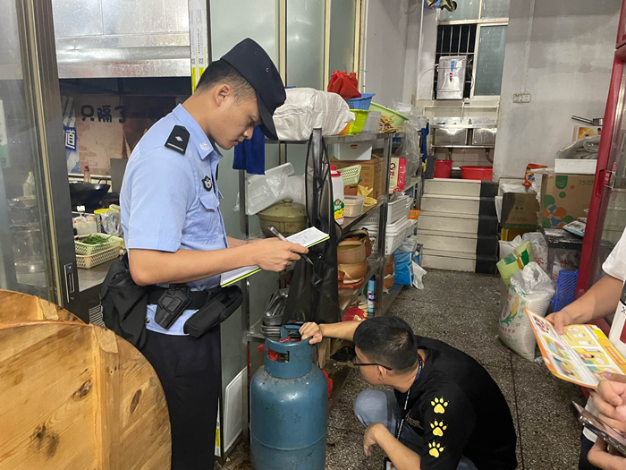 会后,全市公安机关聚焦安全生产问题,加强研判分析,排查化解各类安全隐患。当晚,市公安局会同住建、应急、消防、商务等部门对全市各镇街开展燃气安全隐患专项排查整治行动。检查中,民警重点排查整治酒店饭店、烧烤档、火锅店等使用不合格燃具、电气线路私拉乱接、电动自行车违规停放或充电、安全疏散通道不畅、违规储存助燃剂等各类安全隐患,同时加强安全宣传教育,提高群众安全防范意识。