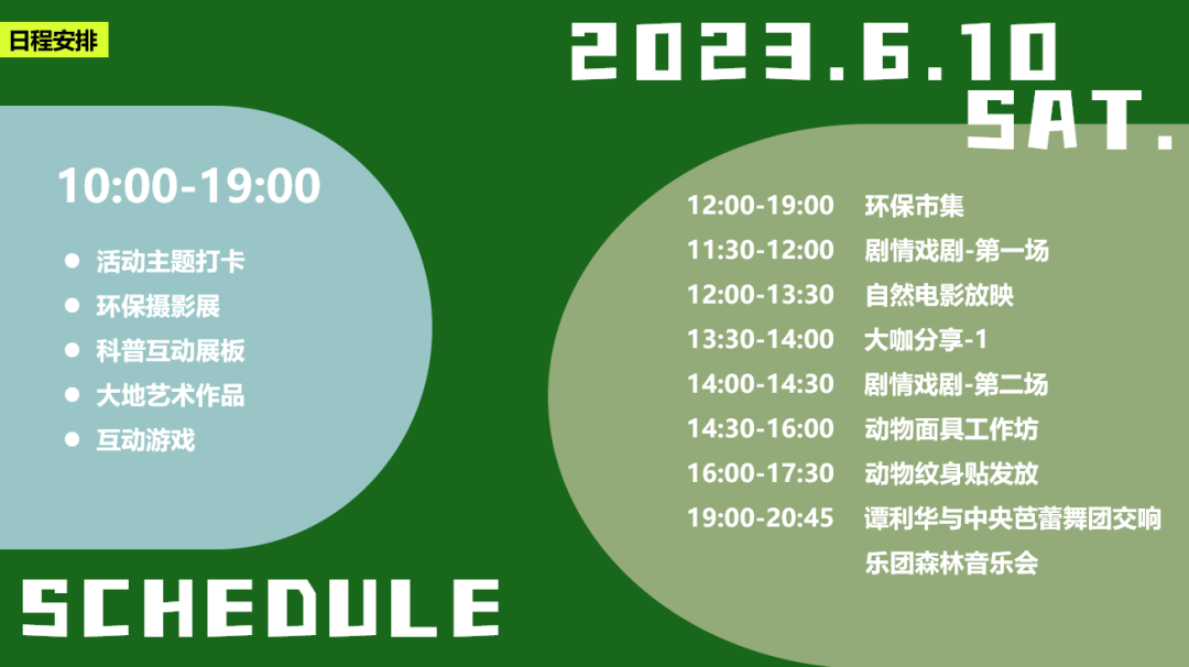 附赠大咖演讲、主题展览、市集、参与式自然戏剧等丰富活动。