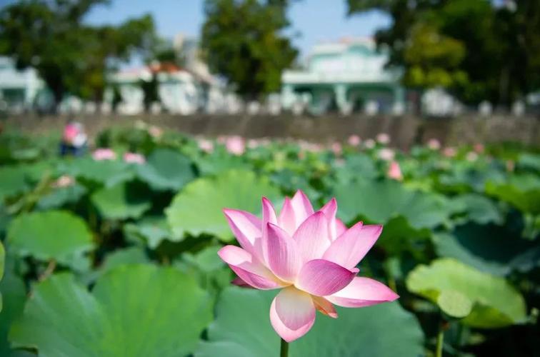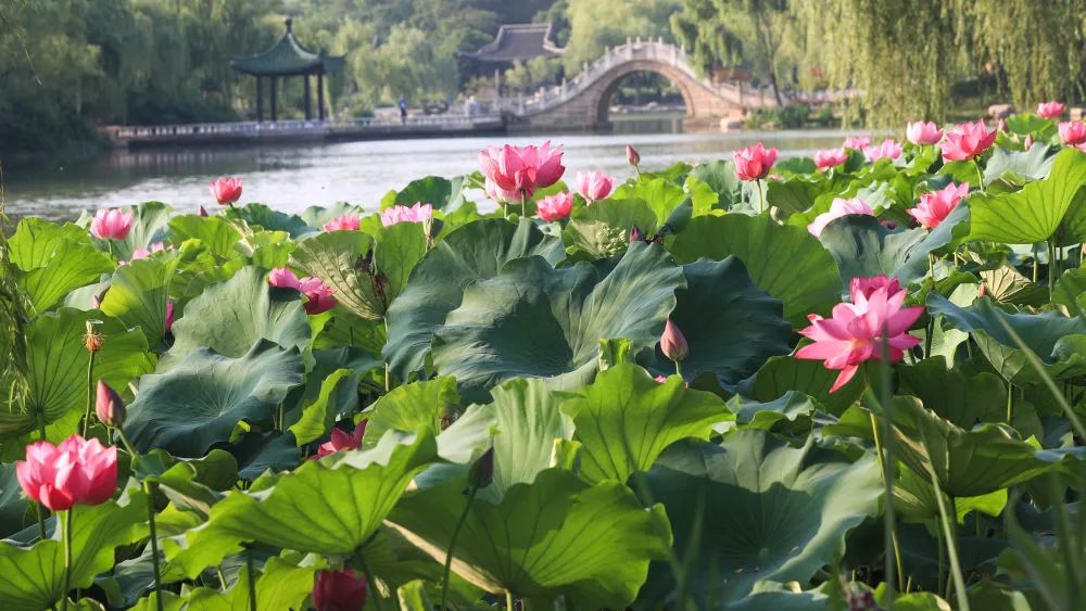 菱叶萦绕着水波,菡萏珠玑点缀,让我们一起做一场梦,在花底扁舟中沉醉。