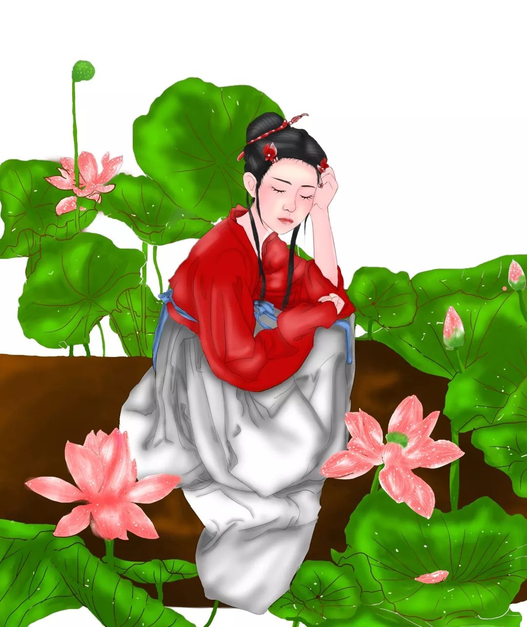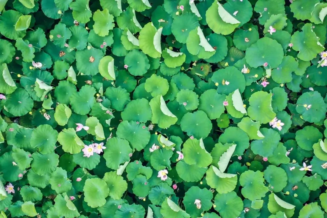 菱叶萦绕着波纹,菡萏花瓣点缀其中,让我们一起做一场梦,在扁舟上感受花底的气息。