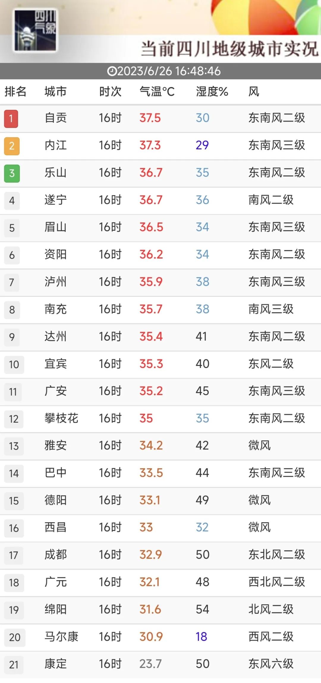 自贡的气温已经达到了37.5°C。