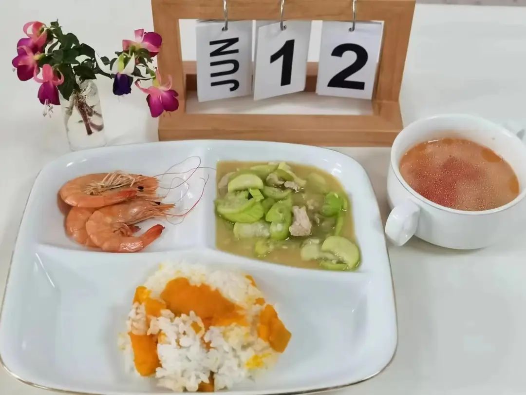 番茄三鲜汤和南瓜饭。