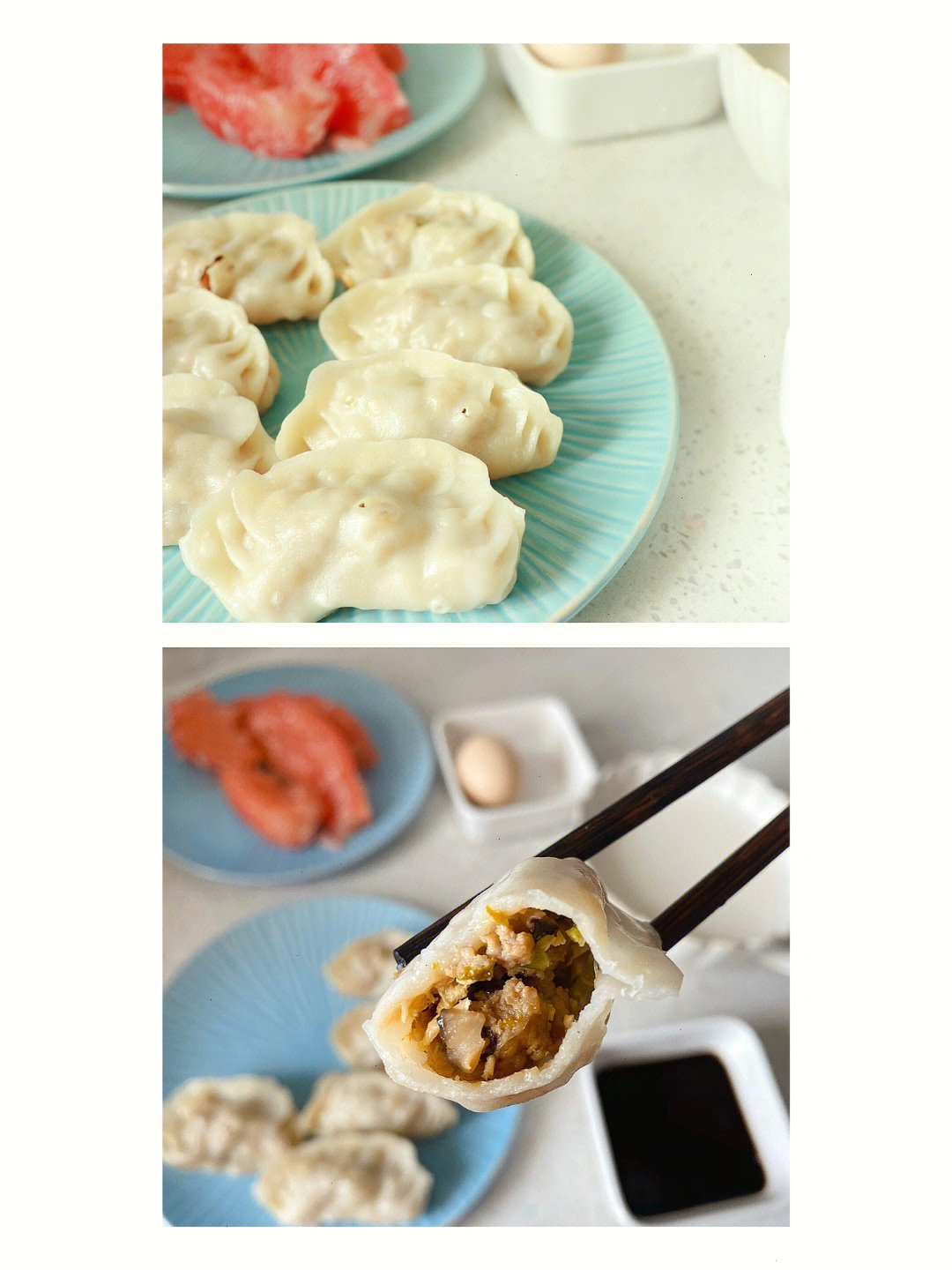 午餐:芹菜猪肉香菇饺子。