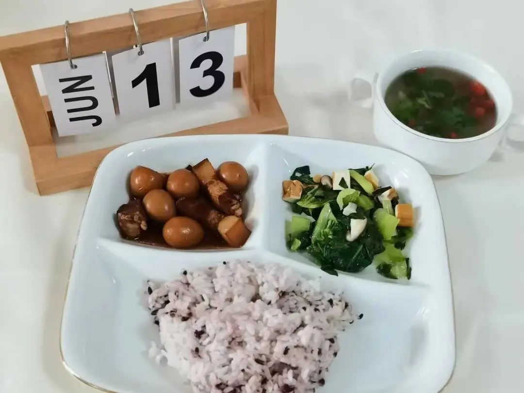 午餐时,我们品尝了鹌鹑蛋烧肉和油菜香菇。
