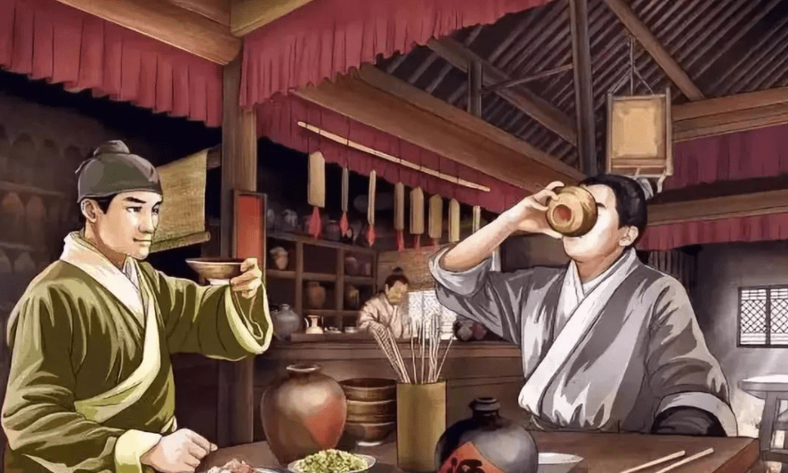 西市饮食店中,有不少是外商开的酒店,唐人称为“酒家胡”。唐代文学家王绩在待诏门下省时,每天饮酒一斗,被称为“斗酒学士”。他作的诗中有一首《过酒家》写道:“有钱须教饮,无钱可别沽。来时常道贳,惭愧酒家胡。”这首诗描述了闲饮胡人酒家的事。酒家胡竟还可以赊欠酒账,这为酒客们提供了极大的方便,也说明各店可能都有一批熟识的老顾客。