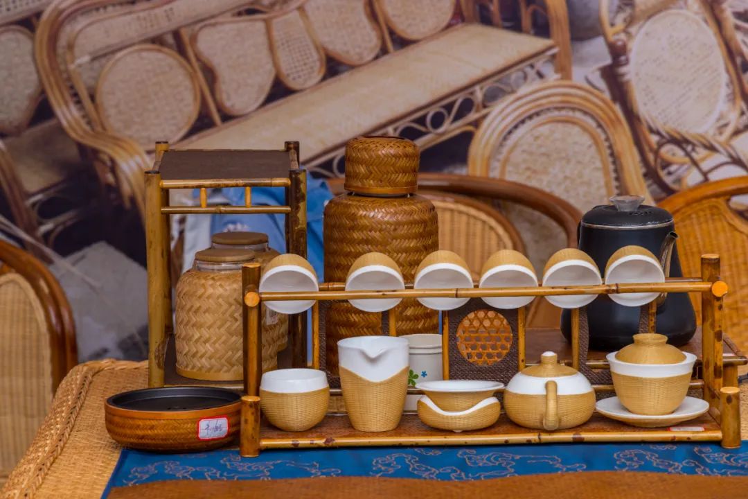 藤编产品的色泽素雅、纯朴自然、轻巧灵便,玲珑剔透,无论置于寒室还是布于华堂,都不会给人奢华的感觉,古雅而不乏时代新意。藤编产品适合于贫富共享、雅俗咸宜。它约有5000多个花色品种,主要有藤笪、藤席、藤织件、藤家具等4类,具有轻巧、凉爽、耐用的特点,深受消费者喜爱。