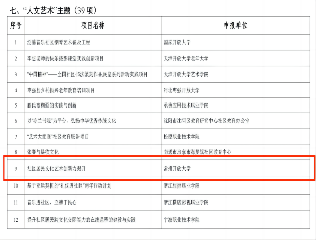 近日,教育部职业教育与成人教育司宣布了一则喜讯:常州开放大学有2个项目入选教育部社区教育“能者为师”实践创新项目,包括校党委书记、校长顾锡宏申报的《社区父母家庭教育指导特色课程》和吕颖老师申报的《社区居民文化艺术创新力提升》。